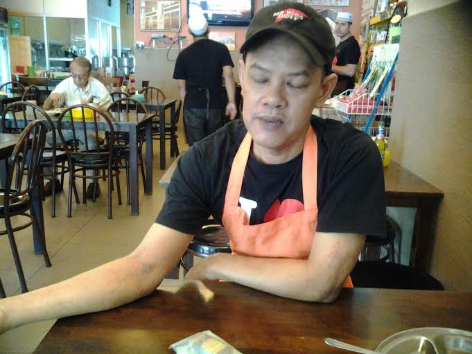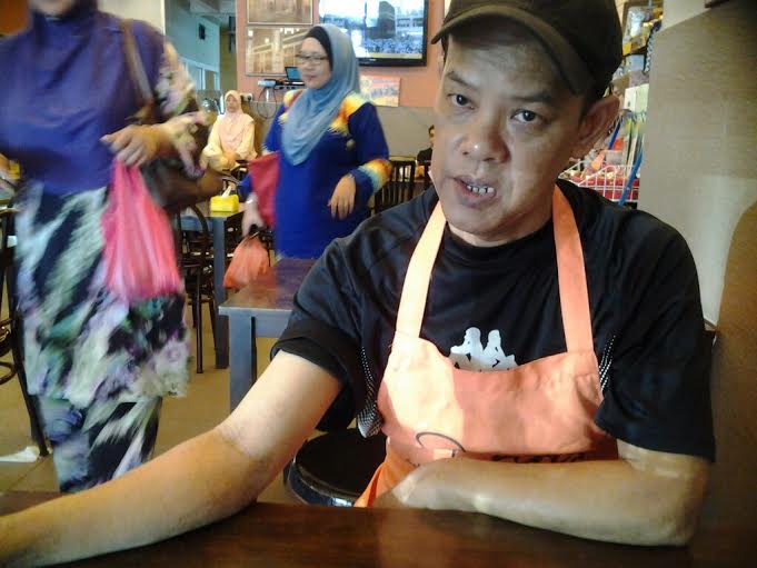 terpaksa berjalan menggunakan tongkat. Saya menyapu minyak